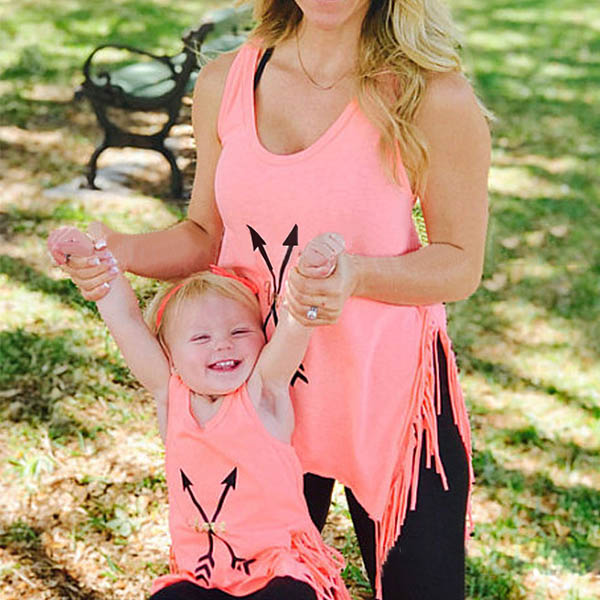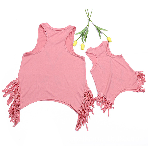 Between the mother and daughter,this parent-child tank top is a cool way to witness their close relationship