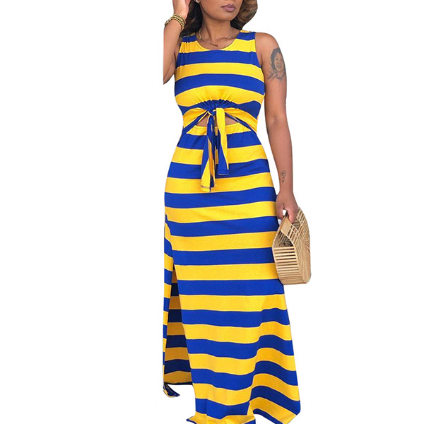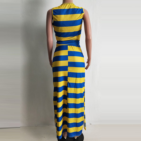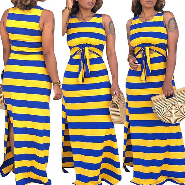 a sleeveless crop top and a high waist slit hem skirt,this two-piece set knows how to exude your sexy