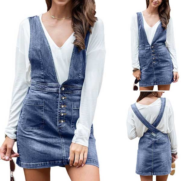 This denim suspender dress is a good way to showcase your youthful and playful side. Designed with sleeveless,