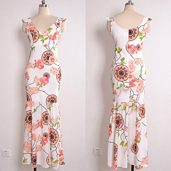 Boasts chic and eye-catching printed pattern,the v-neck and fishtail hem design will further enhance