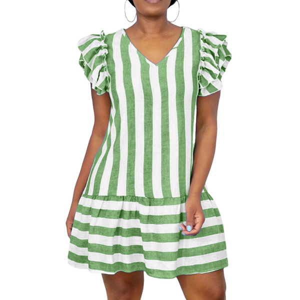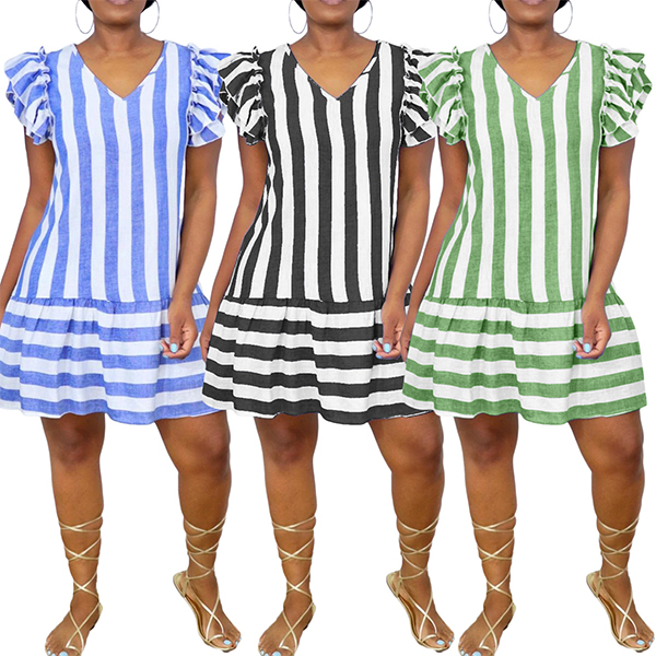 Fashion Sleeveless V-neck Front-button Striped Dress