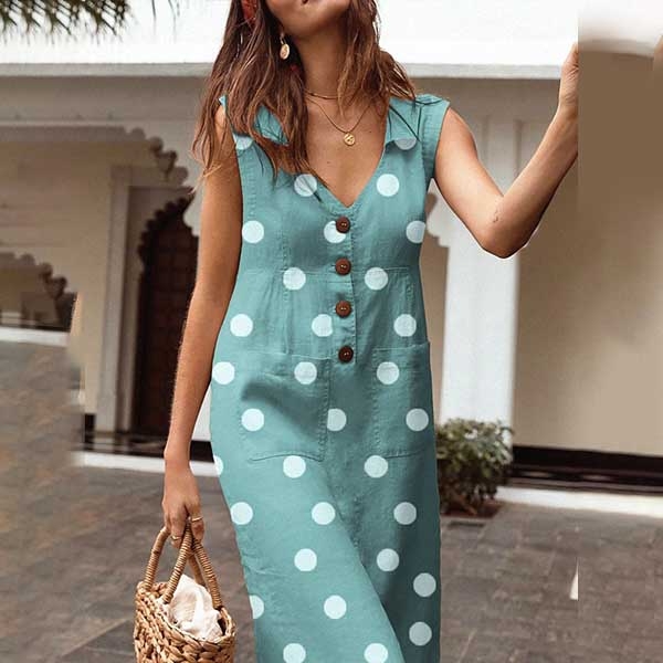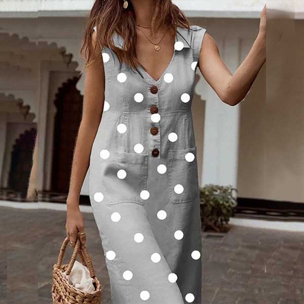 look so attractive. Finished with sleeveless,v-neck and front-pocket design,this dress is perfect fit for