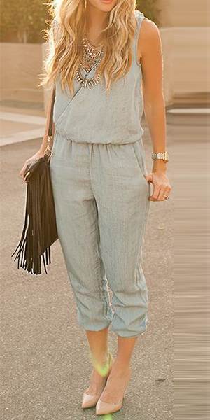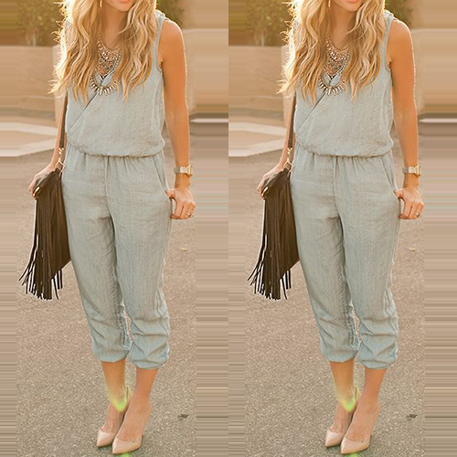 Solid color style,designed with sleeveless,v-neck and an elastic waist,this wonderful