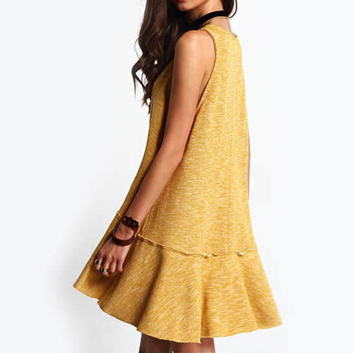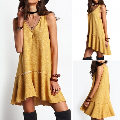 Fashion Sleeveless V-neck High-low Ruffle Hem Dress