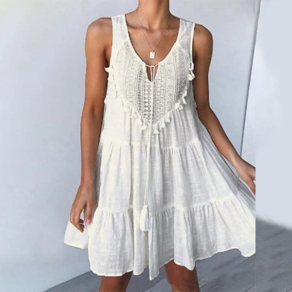 v-neck and lace spliced design boost its charm. Matching with your favourite sandals to