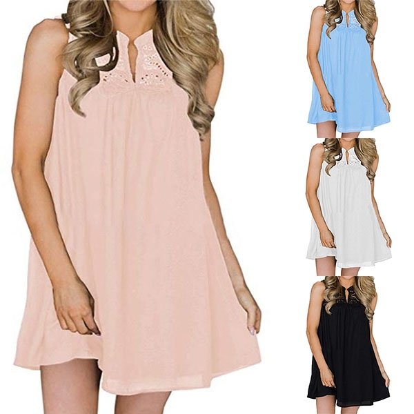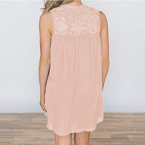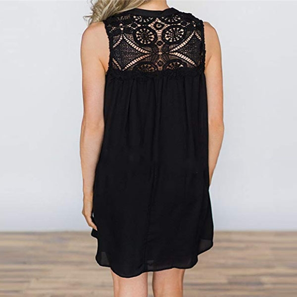 this piece. Solid color style,outfitted with sleeveless,v-neck,lace spliced details and a loose silhouette,