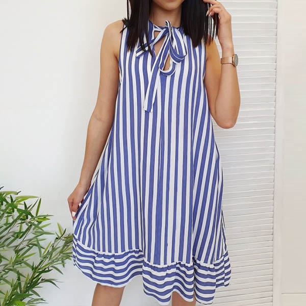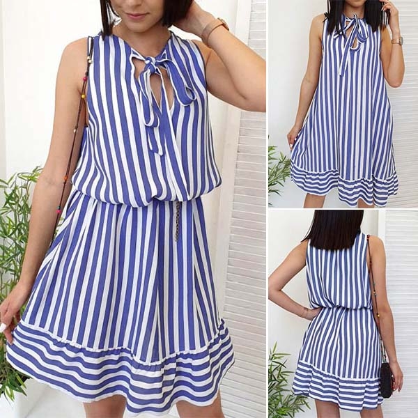 Your daily routine can be made much easier if you have this dress in your team. Striped style,with sleeveless,