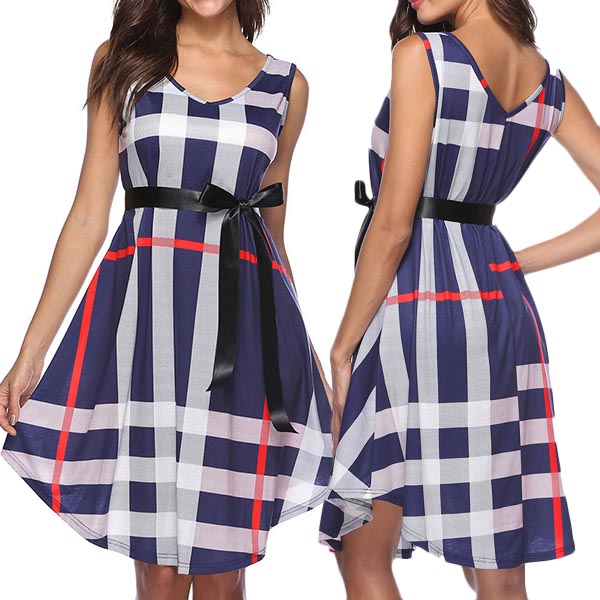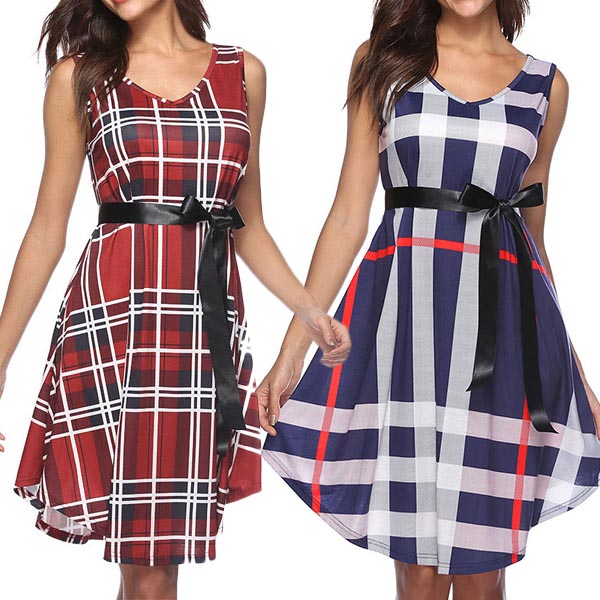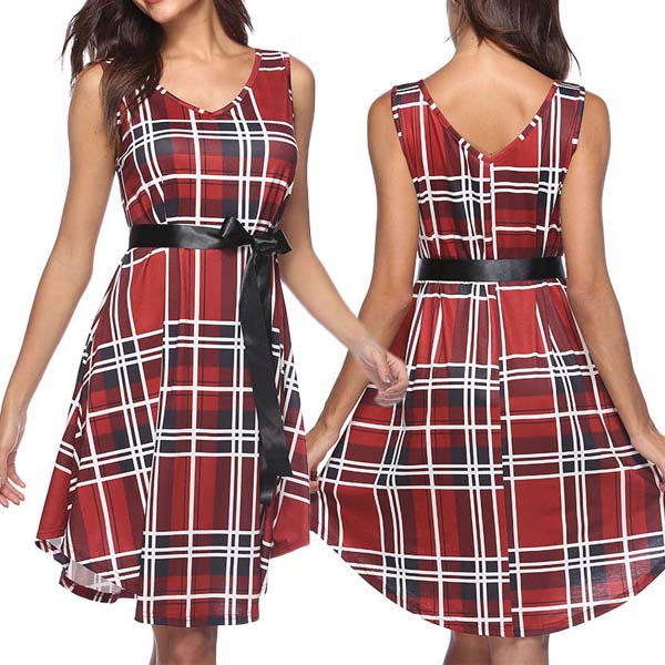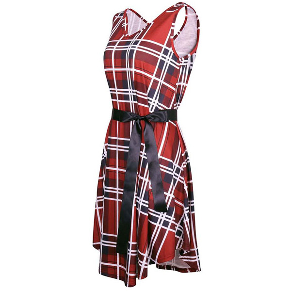 if you have this dress in your team. Plaid style,designed with sleeveless and v-neck design,simple yet stylish.