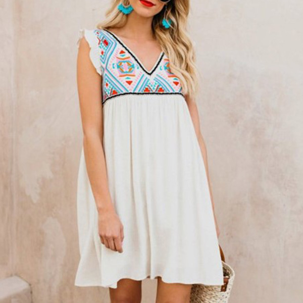the printed spliced design enriches the design style. Matching with a bohemian