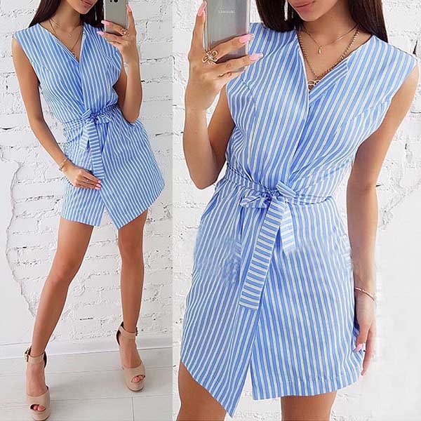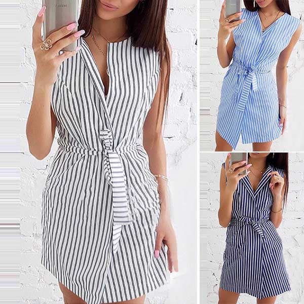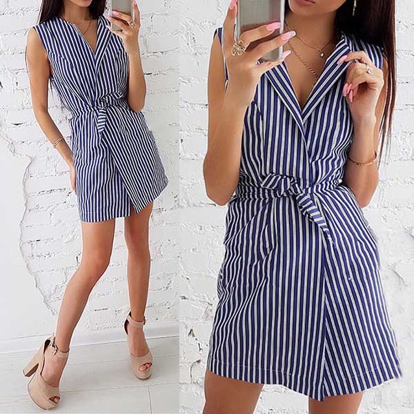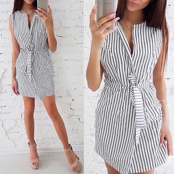 Brighten up your day with this sleeveless dress. Striped element design makes this piece look so stylish and