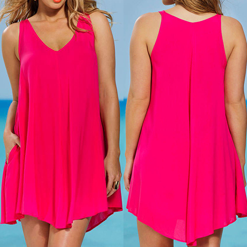 A cozy and stylish chiffon dress is your summer essential,just like this one! Solid color style,with sleeveless