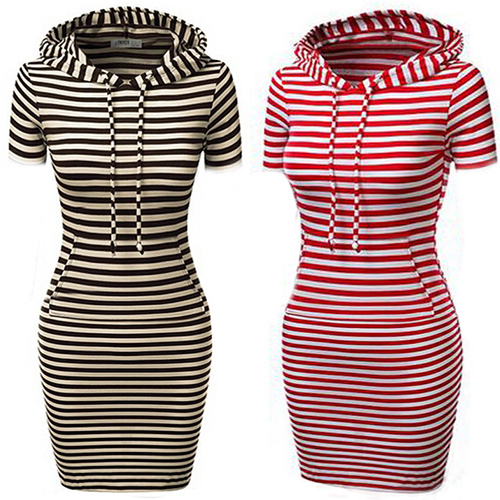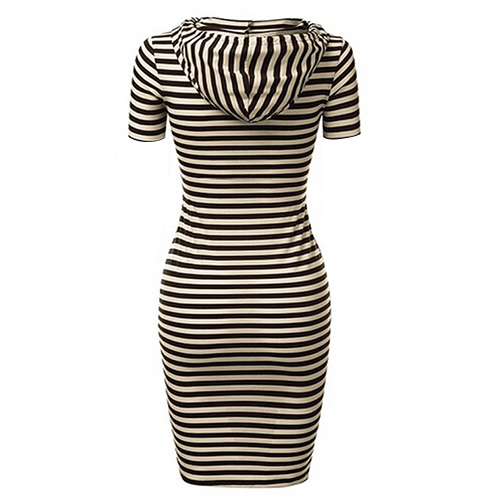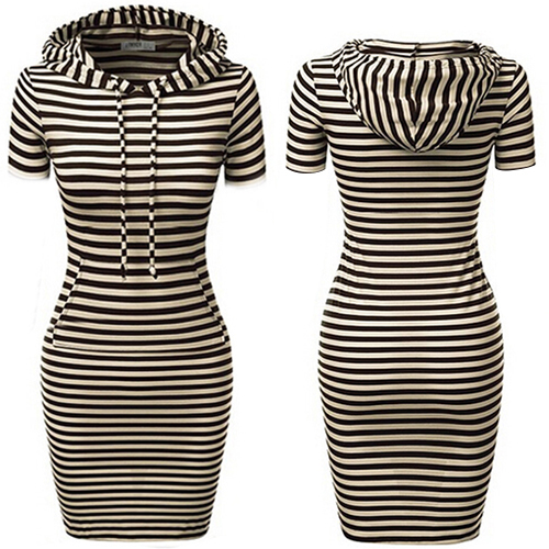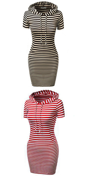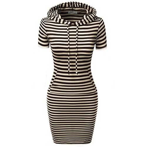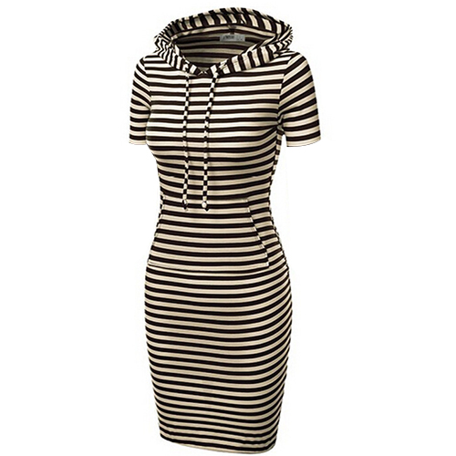 This strip dress is ready for weekends spent by shopping. It has a classic stripe pattern and tailored