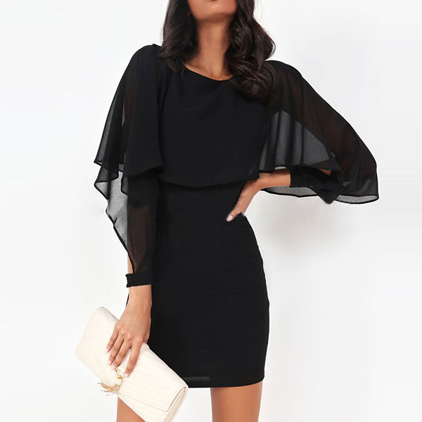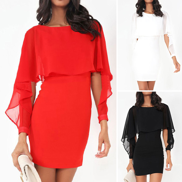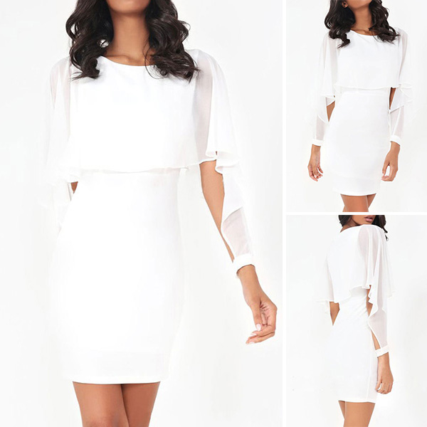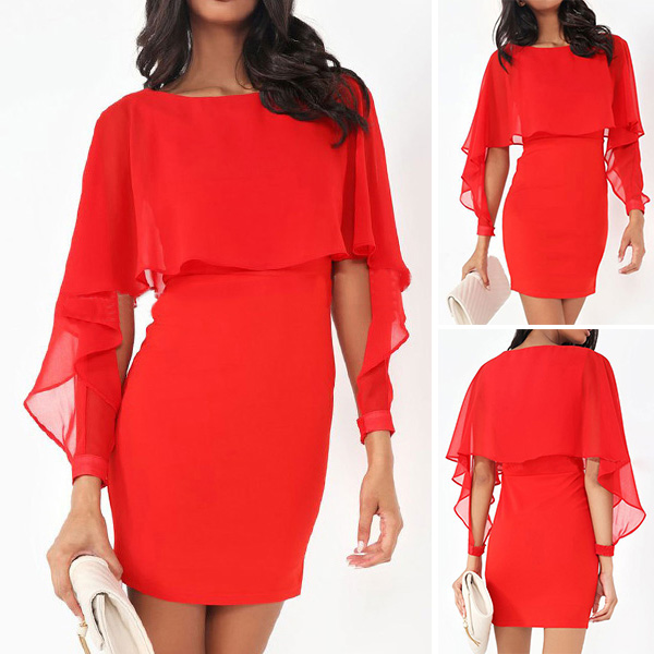 When you slip into this dress,I promise you can win more eyes. Solid color style,its long sleeve with slit hem design and ruffle