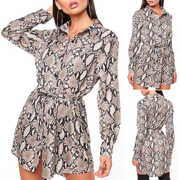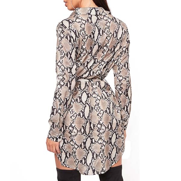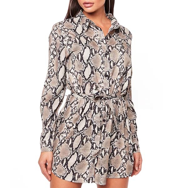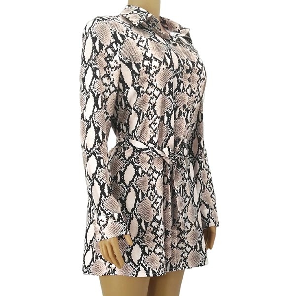 Your daily style can have an instant boost when you wear this shirt dress. The snakeskin printed design