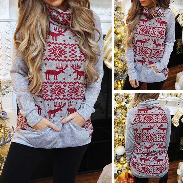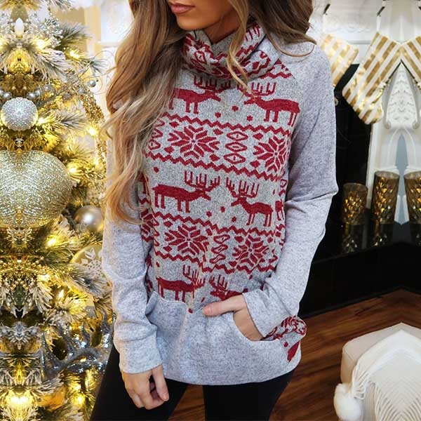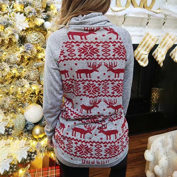Embrace the cold days with this sweater! The snowflake and elk printed pattern design can lend you