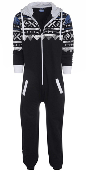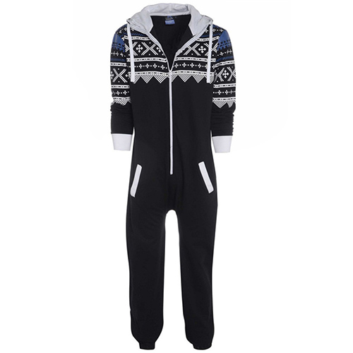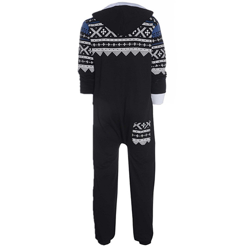 one-piece. With snowflake printed, front zipper, long sleeve and hooded design, casual and fashion. 2 side