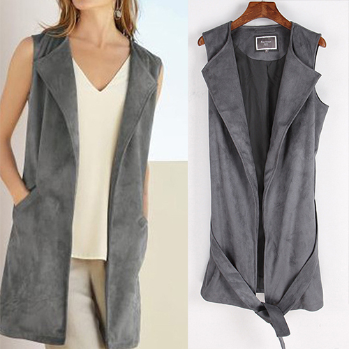 2 side pockets style, with lapel design, fashion and casual. Its waist strap design would