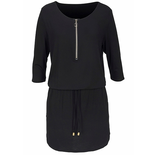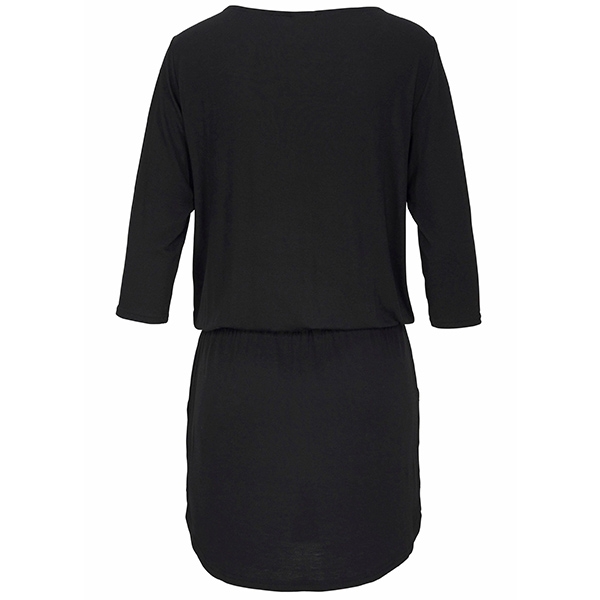 On you lazy days,if you don't want to do your daily matching,you can just slip into this easy-to-wear dress. Finished with 3/4 sleeve and round neck design,this piece is sure to offer you a comfortable day with its soft and breathable fabric. The black tone and drawstring waist design can better showcase your slender figure. Simply matching with your favourite shoes,then you can look fashionable enough!