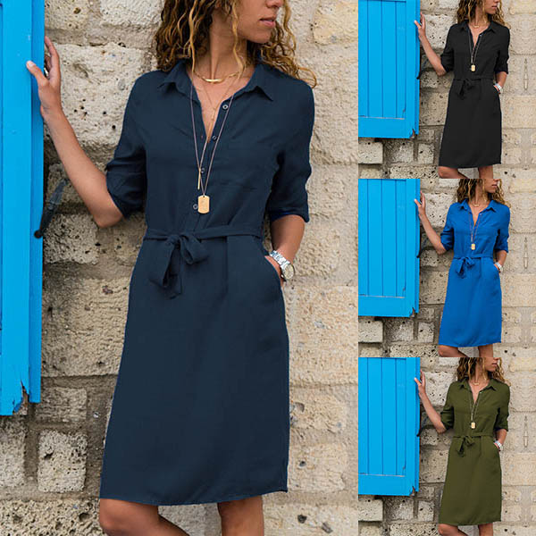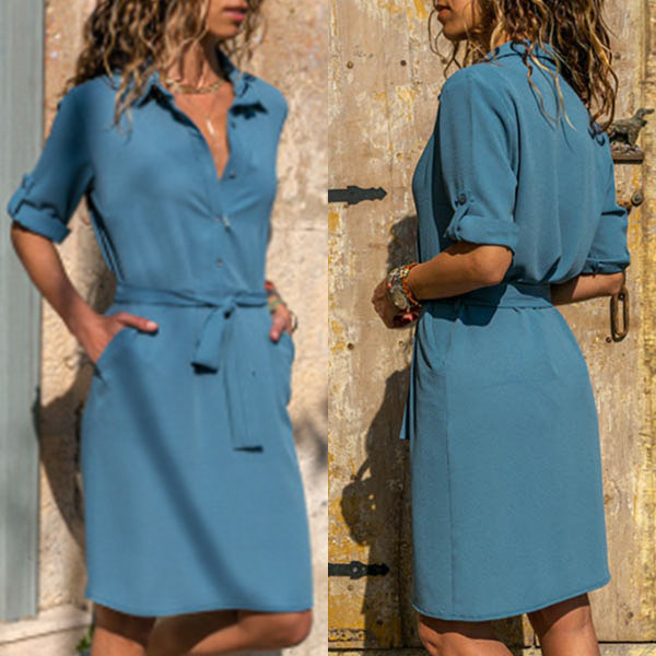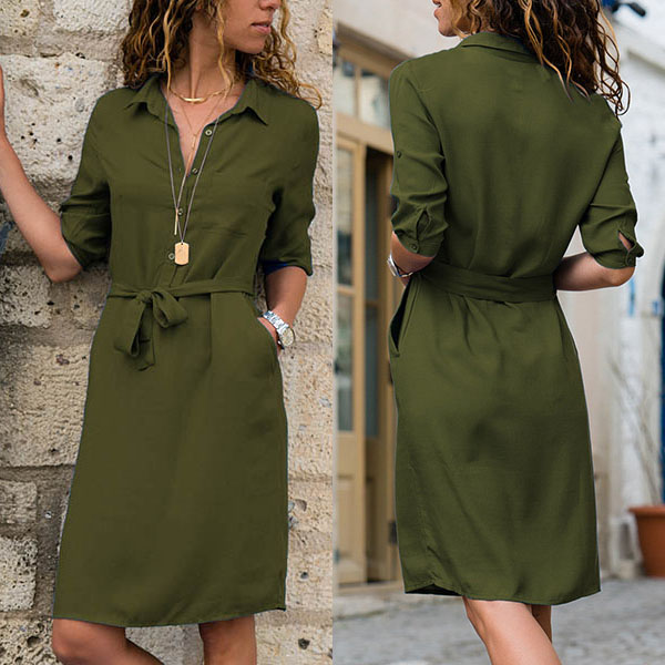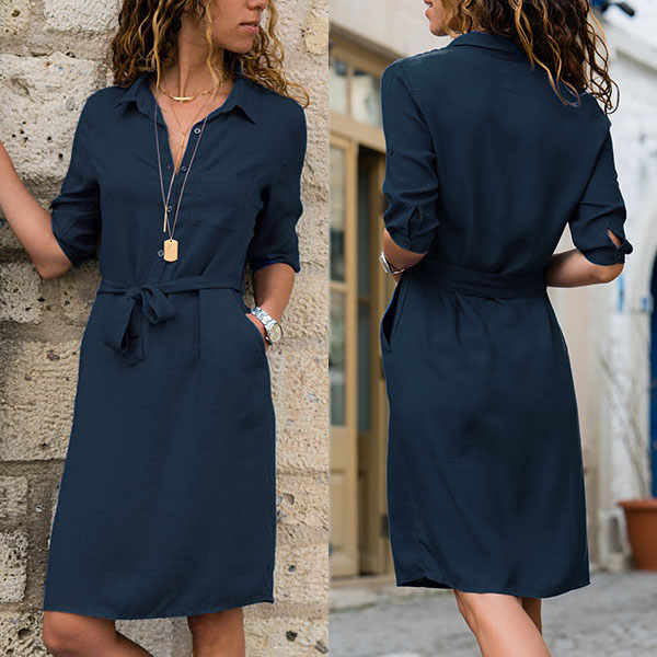 collar design,this shirt dress can display your simple yet stylish personality. And the waist strap design