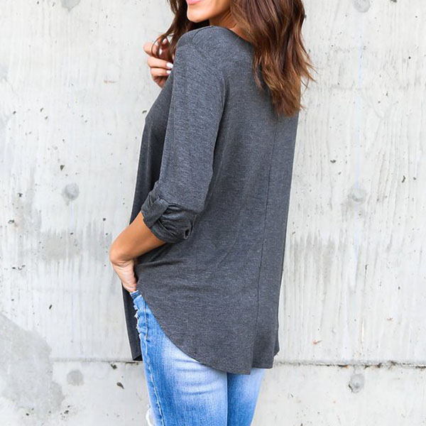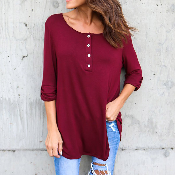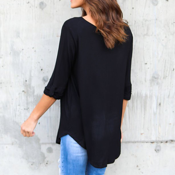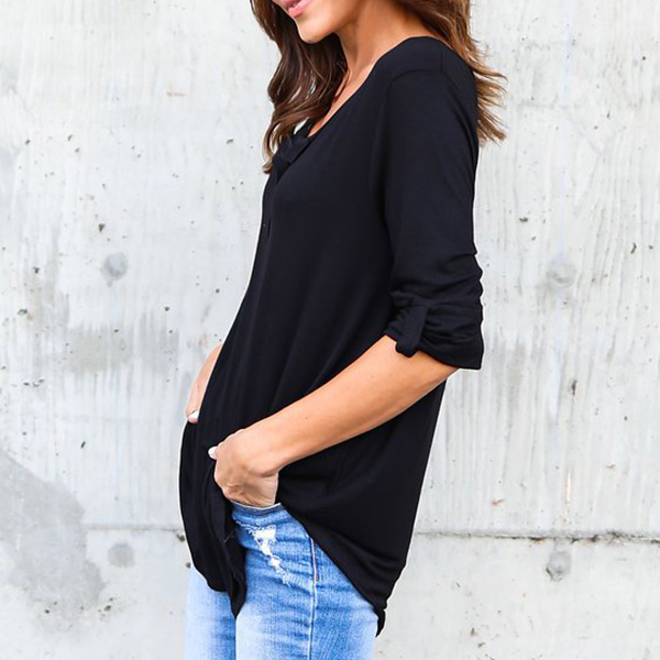 This t-shirt is crafted from soft and breathable fabric,finished with 3/4 sleeve,round neck and a loose