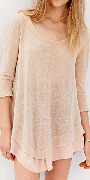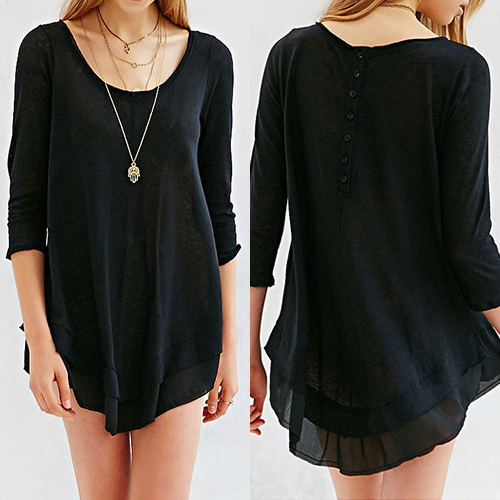designed with 3/4 sleeve,round neckline and chiffon spliced hem,chic and unique. Adding a