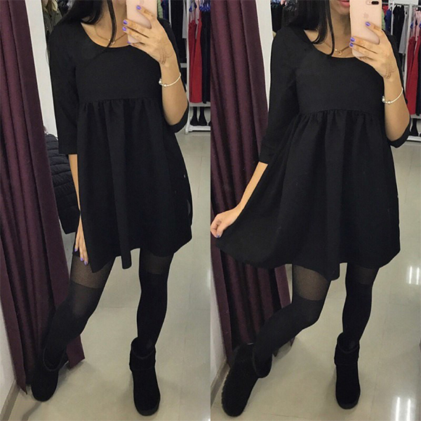 comfort. Solid color style,accompanied with 3/4 sleeve and round neck design,this dress is a good choice for your