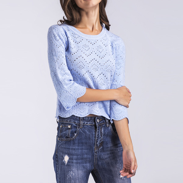 Invite this different style sweater to your wardrobe to make it have an updated. Solid color style,designed with 3/4 sleeve,