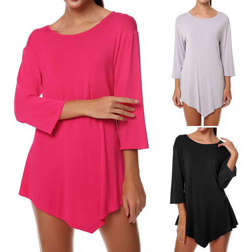 Add this wonderful piece to your closet! It features solid color style,with 3/4 sleeve,round neck and