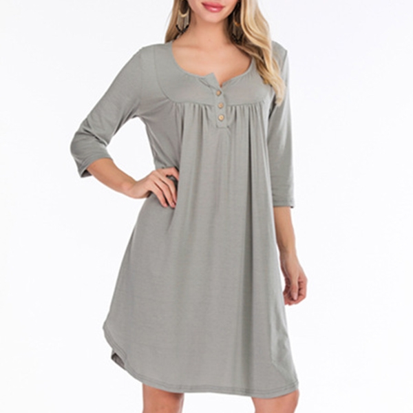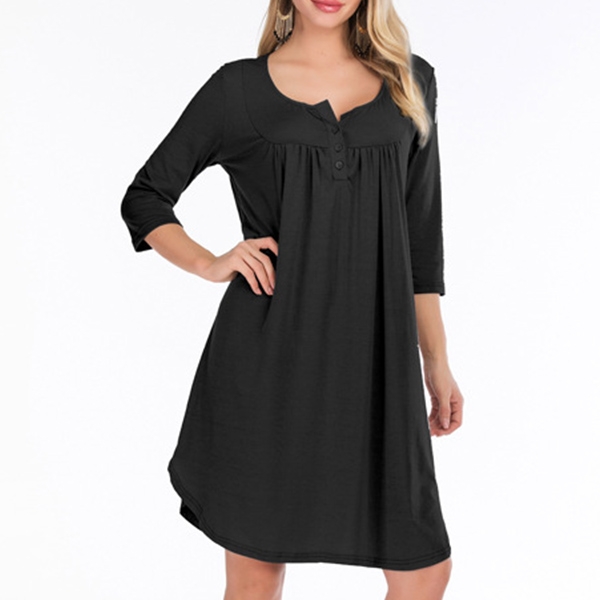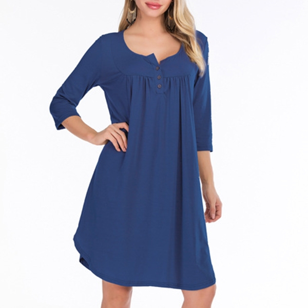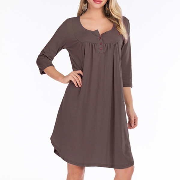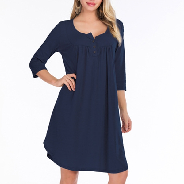 which makes this dress look simple yet generous. Finished with 3/4 sleeve,round neck and