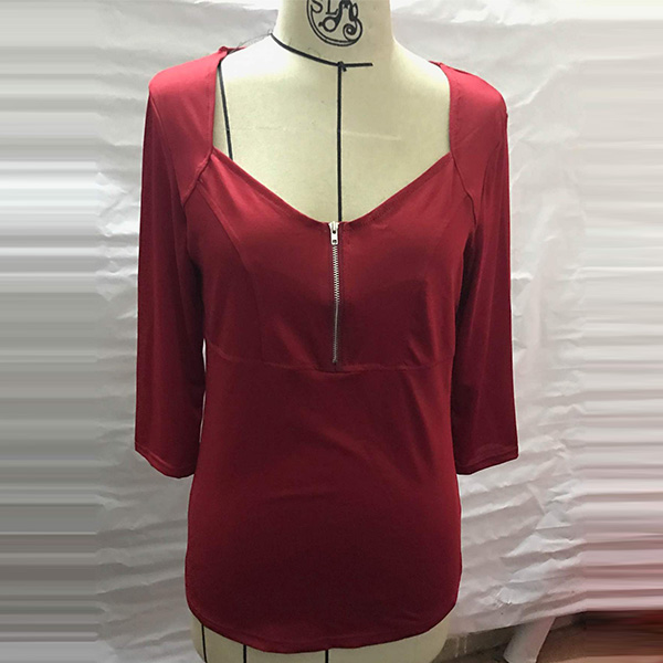 This t-shirt is styled with a solid color,3/4 sleeve,square collar and a fit silhouette,which not only can