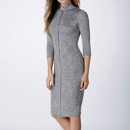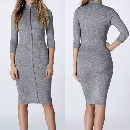 show off your slender figure. Solid color style,outfitted with a stand collar,3/4 sleeve and a mid