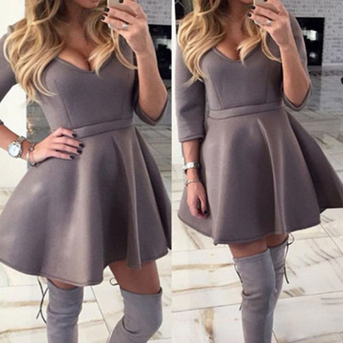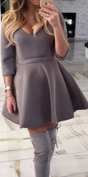 Add this simple and stylish A-line dress to your closet! It features solid color style,with 3/4 sleeve and v-neck design,