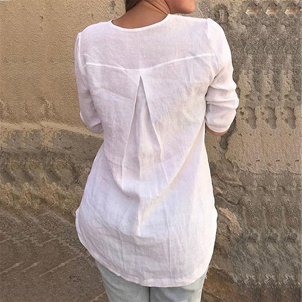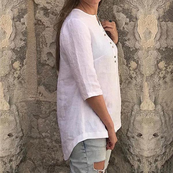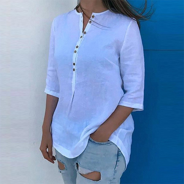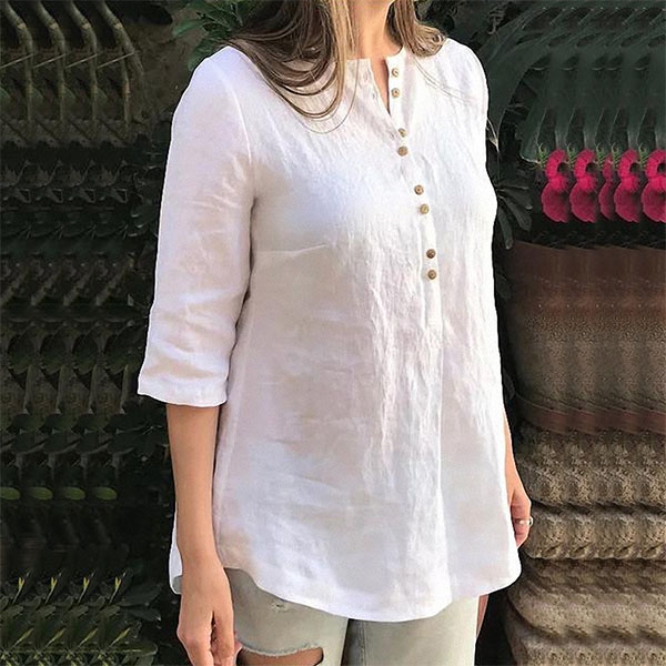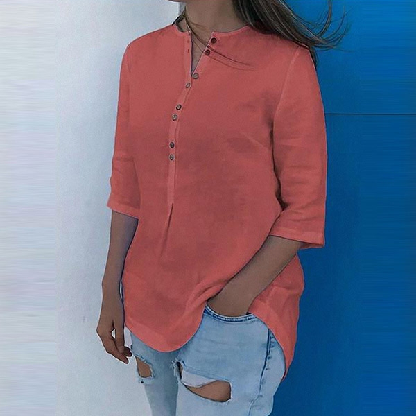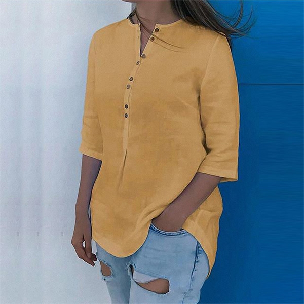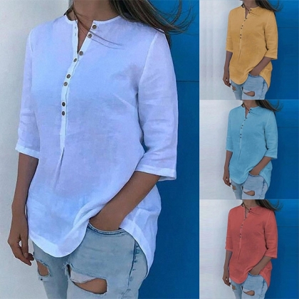 It comes with a solid color,finished with 3/4 sleeve and v-neck design,its soft and breathable fabric