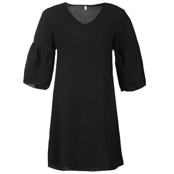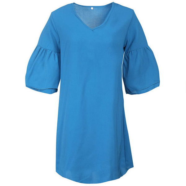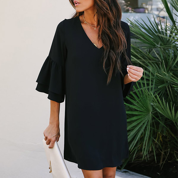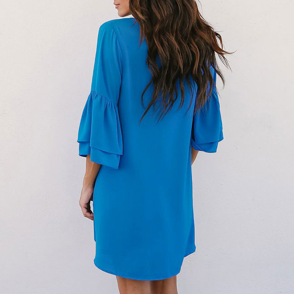 finished with 3/4 sleeve,v-neck and a loose silhouette,this dress knows how to give you a cozy yet stylish style.