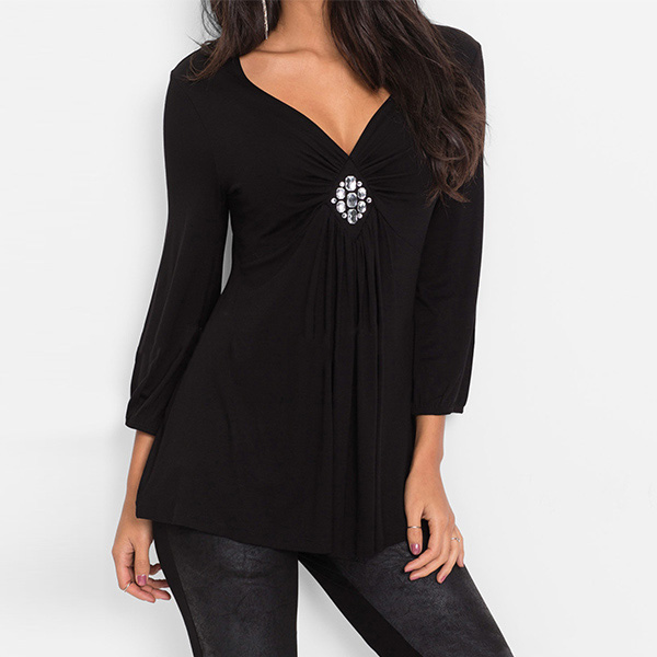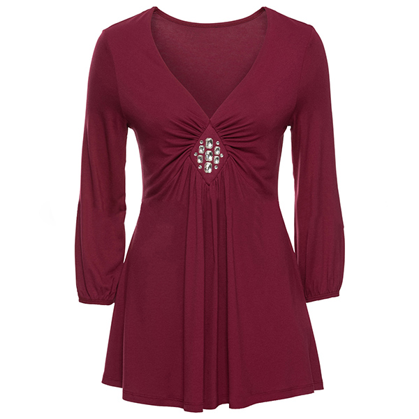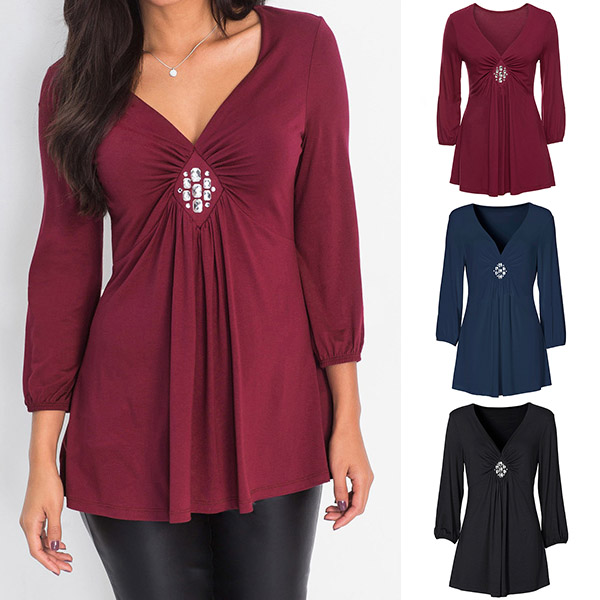 finished with 3/4 sleeve and v-neck,this top can lend you a dash of feminine flavor. Moreover,