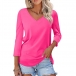 Fashion Solid Color 3/4 Sleeve V-neck T-shirt