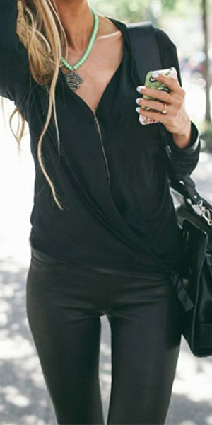 At your first sight,you would be attracted by this t-shirt with its chic and unique design. Solid color style,
