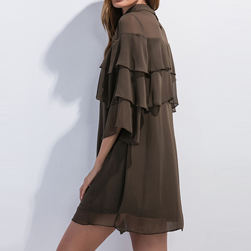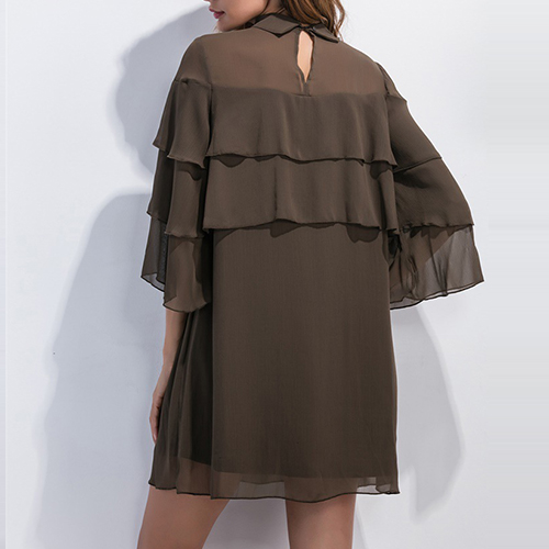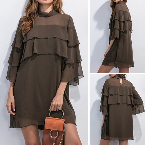 with 3/4 trumpet sleeve and a mock neck,chic and stylish. And its cool and breezy chiffon fabric can ensure