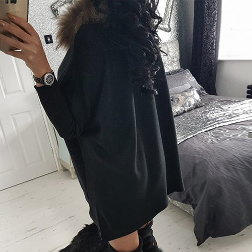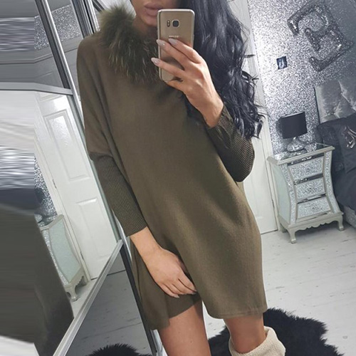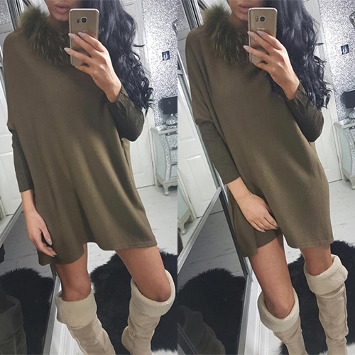 Aimed to send you a warm and stylish style charm, this dress is ready for you. Styled with solid color, bat