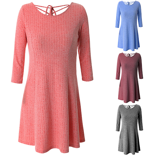 The knit dress is styled with solid color and back bandage design, which can be a unique dress