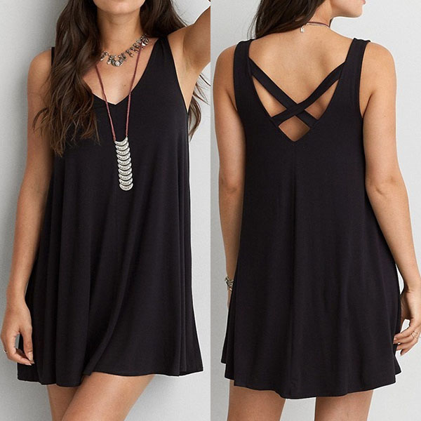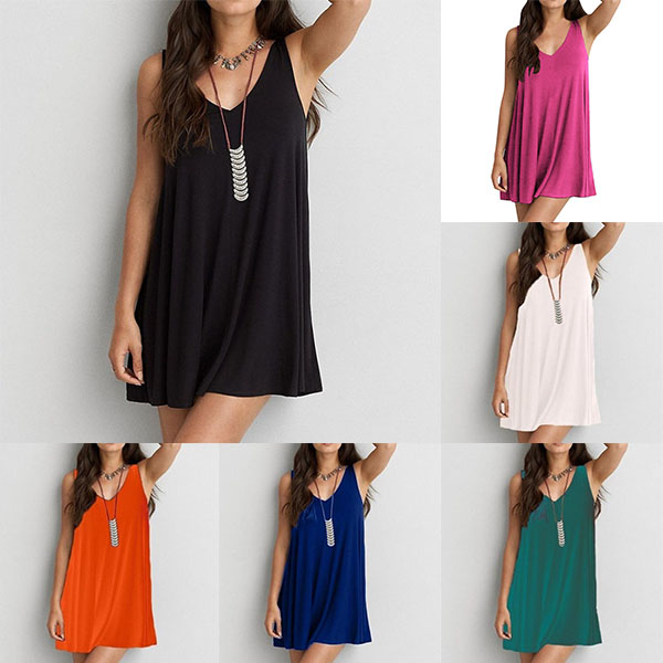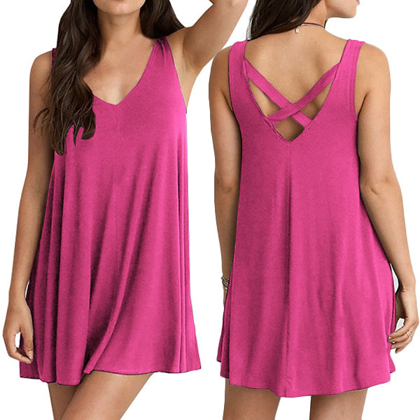 designed with sleeveless,backless,v-neck and a loose silhouette,simple,cozy. If you feel it is too simple and