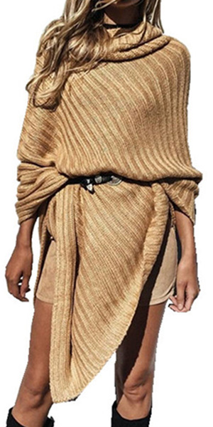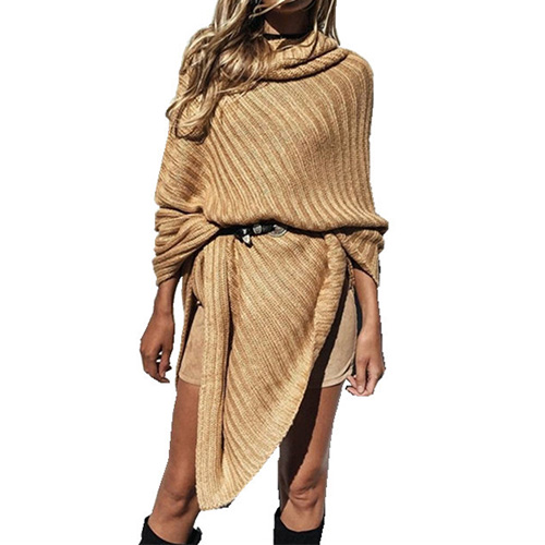 your charming looks. Featuring solid color, bat sleeve and irregular hemline design, this sweater