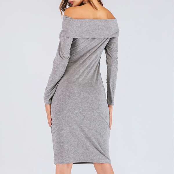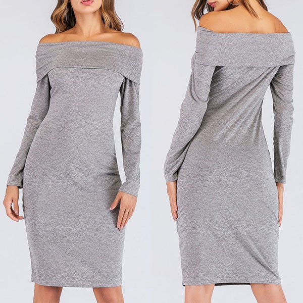 focused on this boat neck dress. It comes with a solid color,accompanied with long sleeve,boat neck