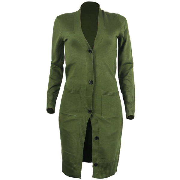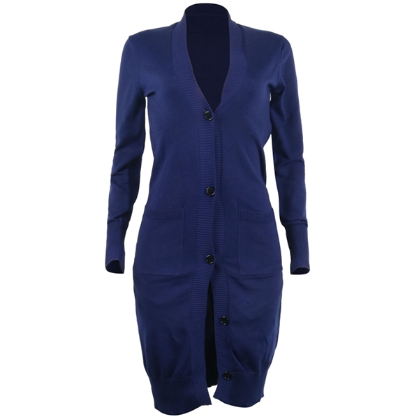 with button front design, V-neckline, front patch pockets, long sleeves, ribbed trim, suit with your fitted