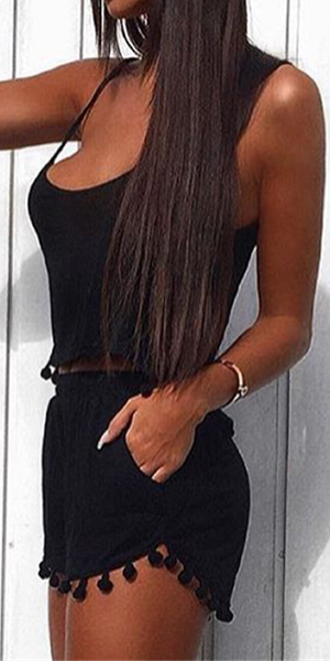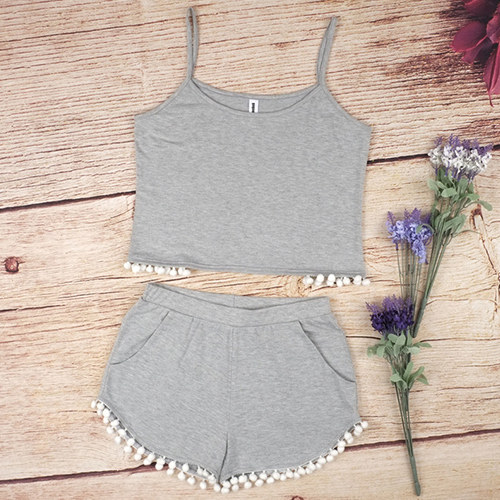 This two-piece set is your perfect summer companion. Solid color style,including a cami tops and an