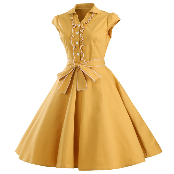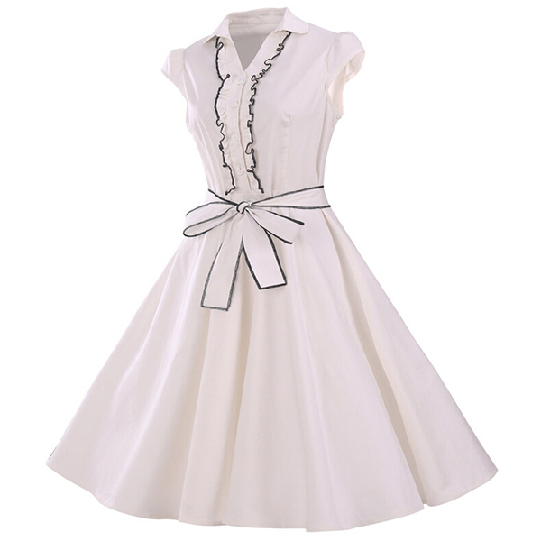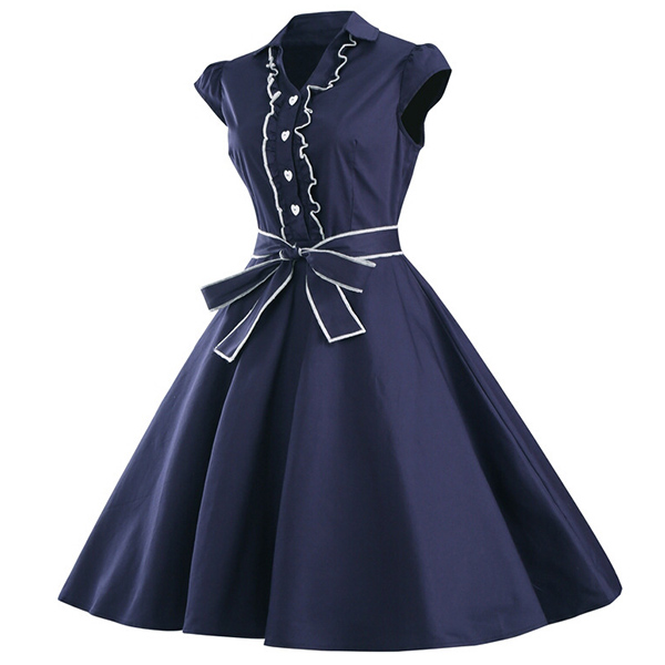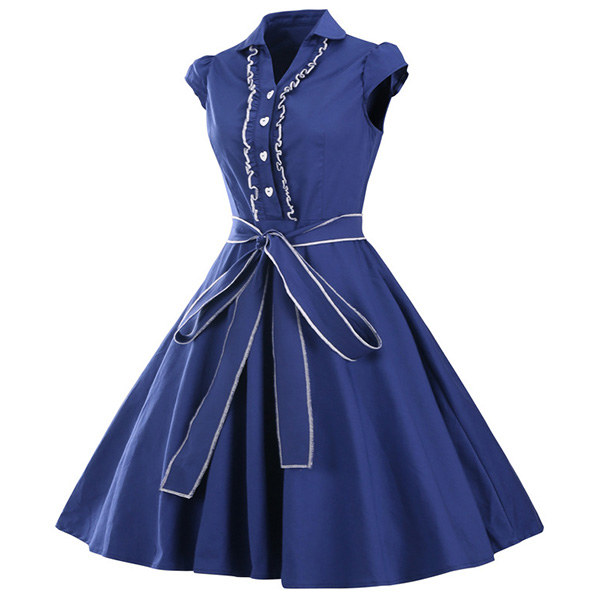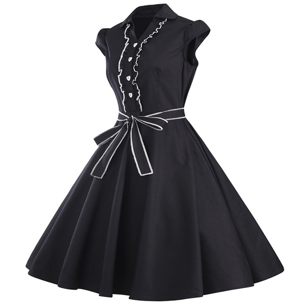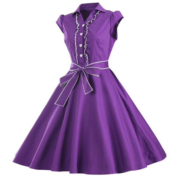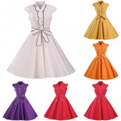 Solid color tone design aims to give you an elegant vibe. Finished with cap sleeve,POLO collar and high
