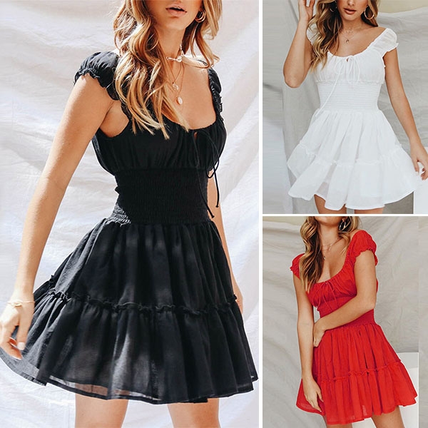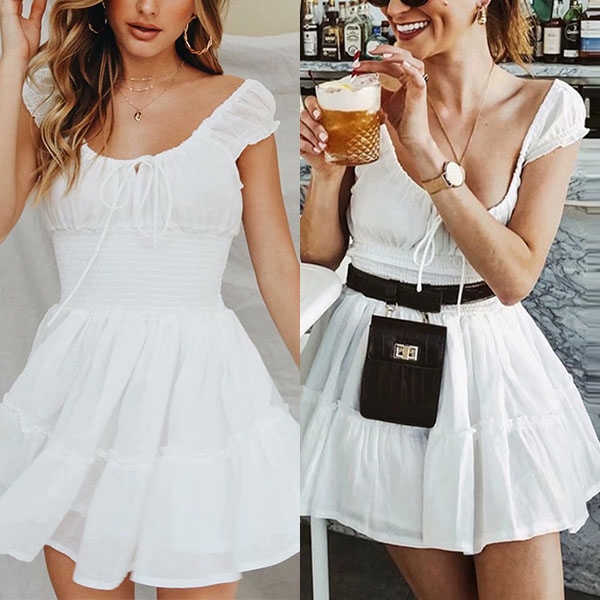 finished with cap sleeve,U-neck and high waist design,this dress can make any girl look