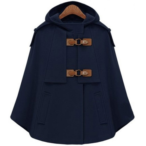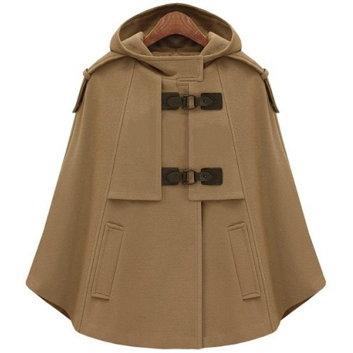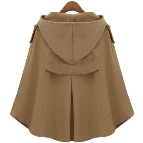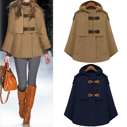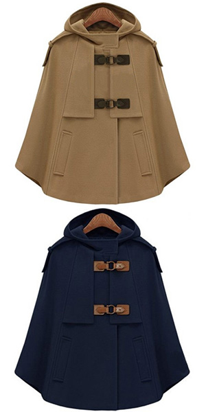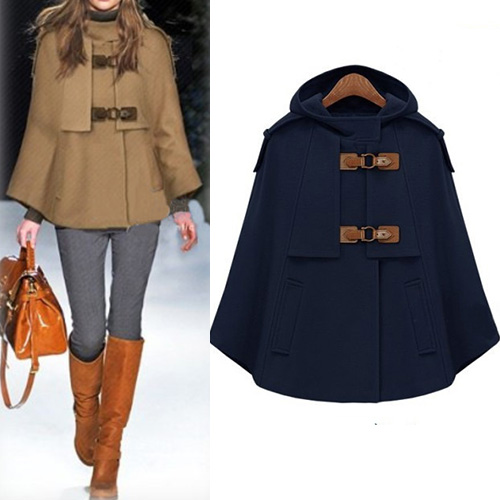 Stay warm as well as stylish in this woolen coat. Cape-style design,with a solid color and