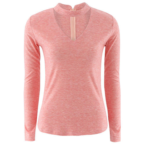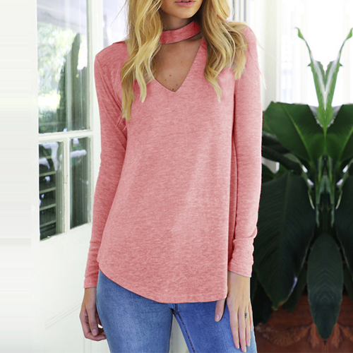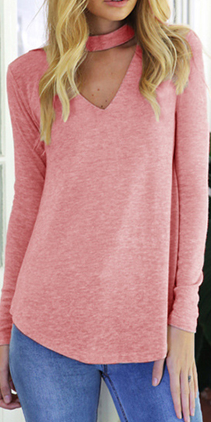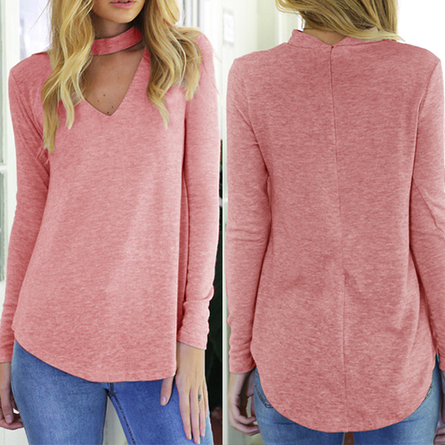 Indulge in your autumn breeze with this solid-coloured tops. Choker neckline construction,