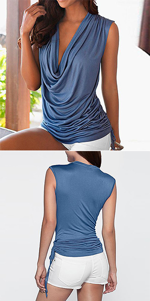 Solid color style,outfitted with sleeveless and cowl neck,this t-shirt can give you a sexy